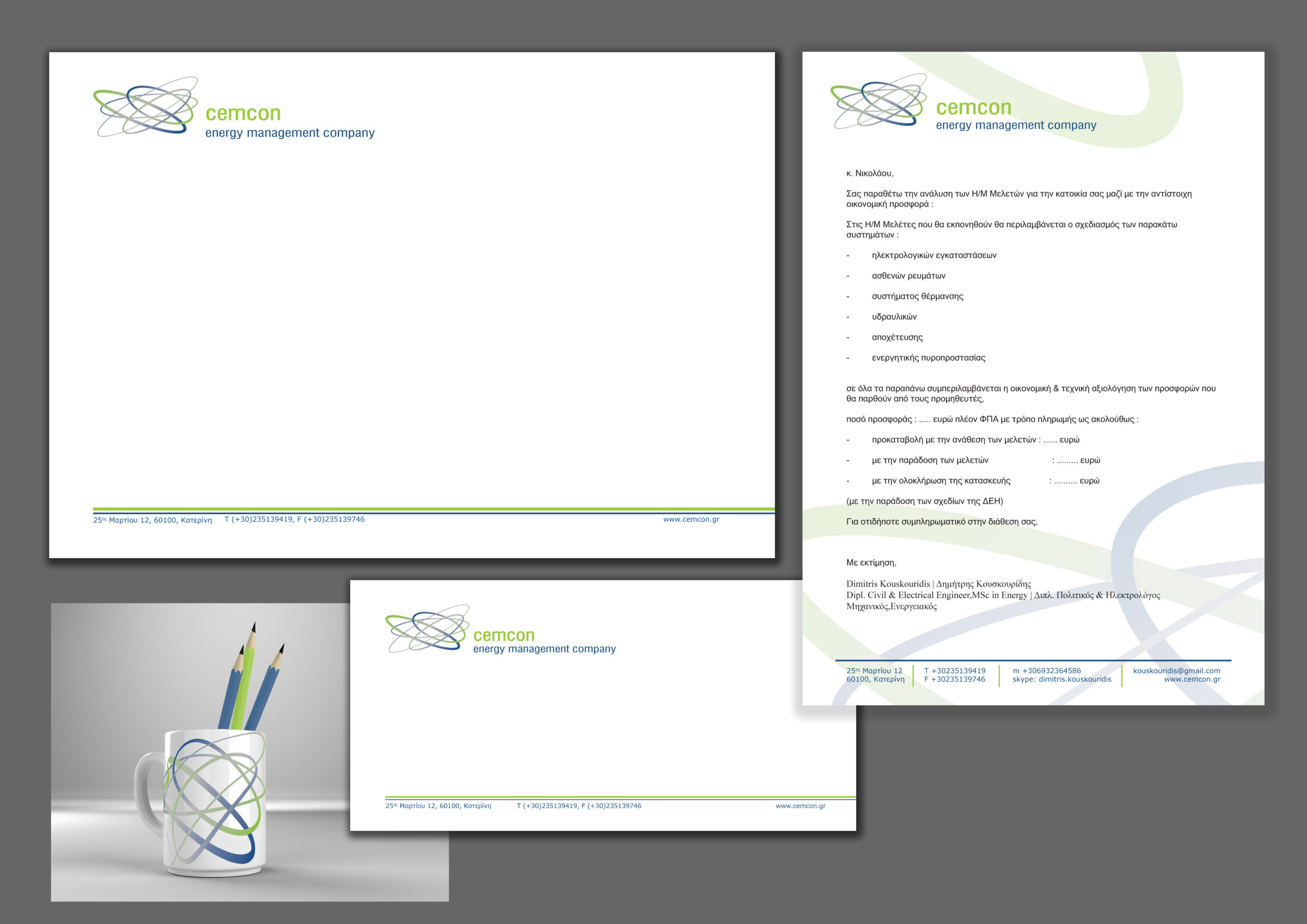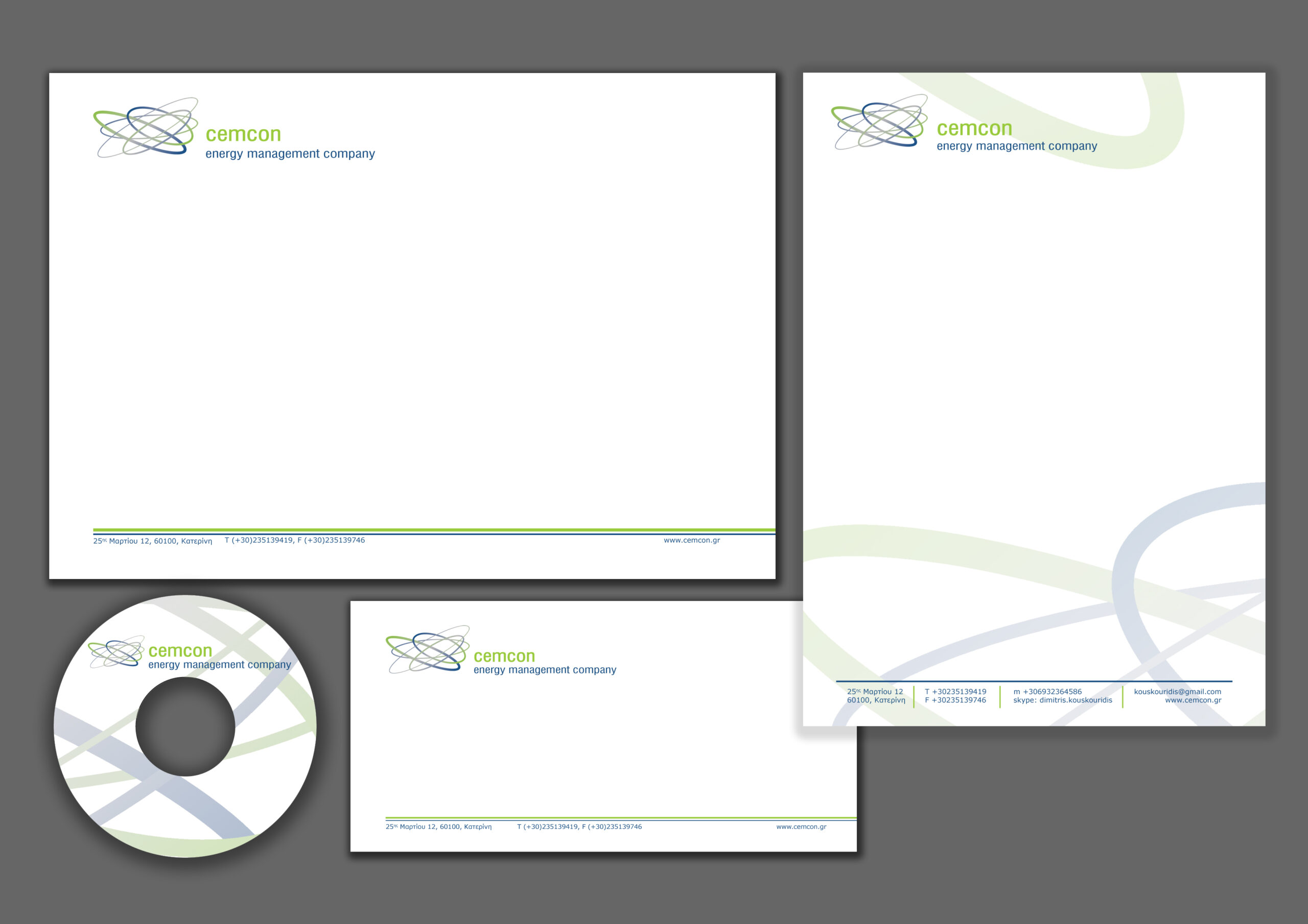 Η νέα εταιρική ταυτότητα της εταιρείας ‘CEMCON’ σχεδιάστηκε με σκοπό να αντανακλά την πρόσφατη δραστηριοποίηση της εταιρείας στο χώρο της διαχείρισης ενέργειας. Το λογότυπο, αποτελούμενο από 6 δακτυλίους, όσα και τα γράμματα της λέξης ‘cemcon’, επιχειρεί να απεικονίσει τη συνεχή ροή της ενέργειας στο περιβάλλον μας και για το λόγο αυτό έχει ακανόνιστο και ασύμμετρο σχήμα. Η διχρωμία μπλε-πράσινο παραπέμπει στα χρώματα της εταιρείας (και σ’ αυτά της συνεργάτιδας εταιρείας ‘ELPEDISON’), συμβολίζοντας τα δύο βασικά τμήματα υπηρεσιών της: το μηχανολογικό και το ενεργειακό τμήμα. Τα χρώματα διεισδύουν το ένα μέσα στο άλλο, όπως και οι υπηρεσίες μηχανολογικών εγκαταστάσεων συνδέονται άρρηκτα πλέον με τις υπηρεσίες διαχείρισης ενέργειας.